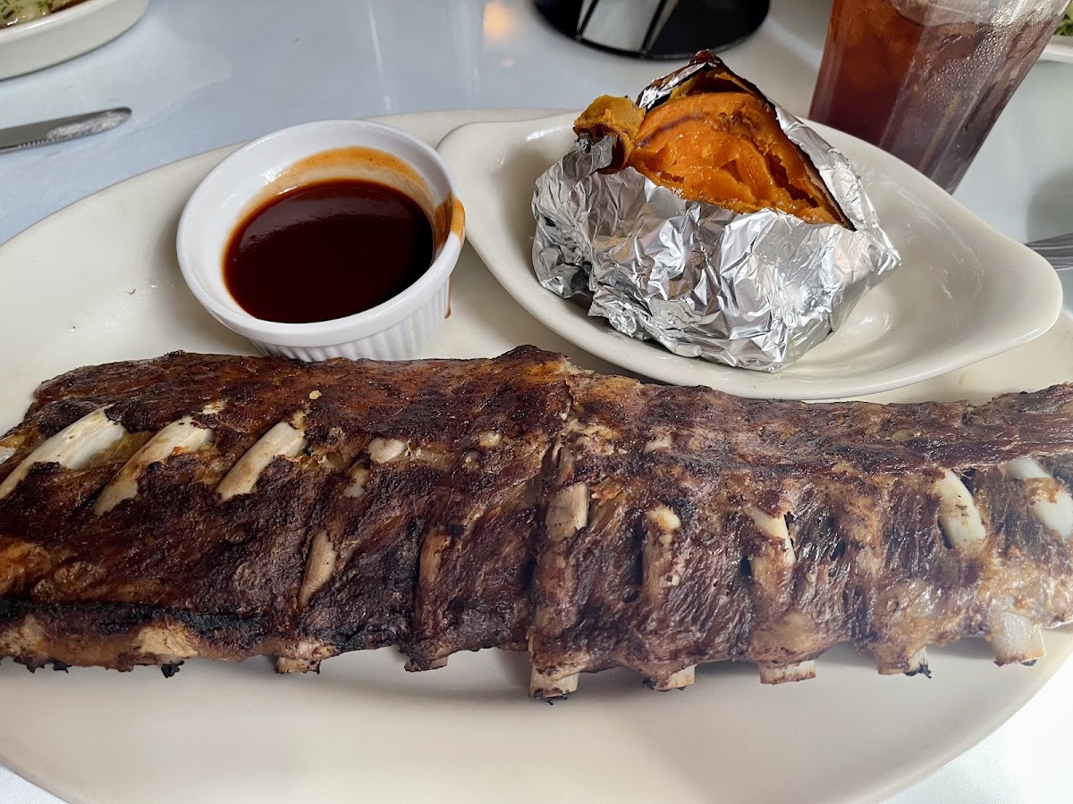 Full Rack of Ribs and Baked Sweet Potato and the Baked Sweet Potato